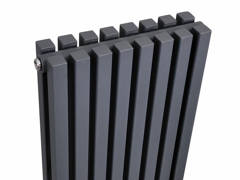 Wysokość standardowego grzejnika pionowego Rebison to około 180 cm. Jeśli dodamy do tego 12–15 cm wolnej przestrzeni od podłogi, to górna część grzejnika znajduje się na poziomie ok. 192–195 cm. A standardowa wysokość pokoju to średnio 250 cm. Oznacza to, że i tak zostaje wolne miejsce pod sufitem. Dlatego można przyjąć zasadę, że dobrze, jeśli odległość od sufitu wynosi minimum 10 cm. To wystarczy, by powietrze swobodnie krążyło.